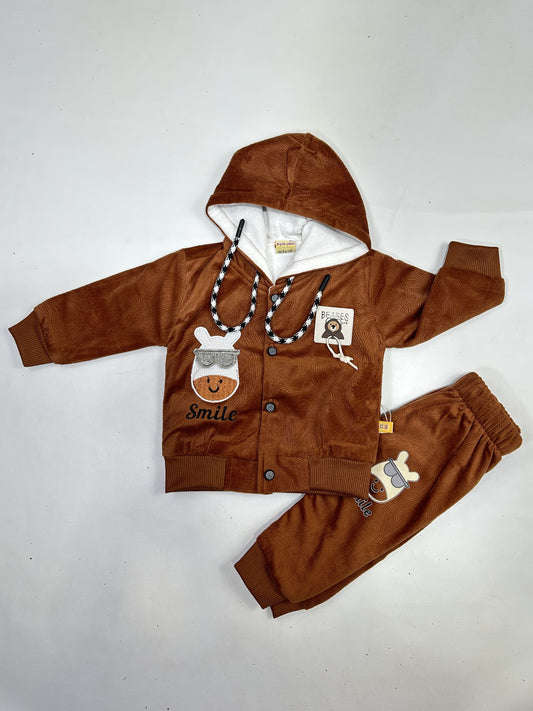 3Mth - 9Mth Brown Fleece Baba Suit For Newborns AJ NBS586