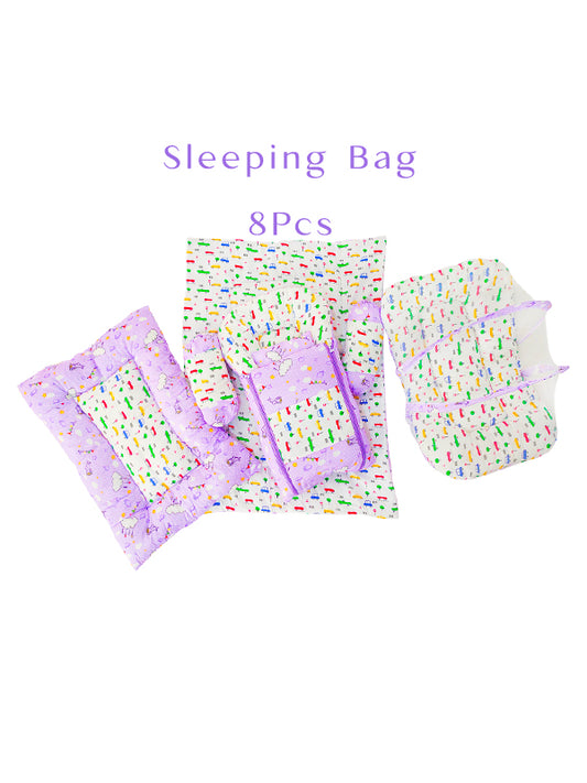 8Pcs Newborn Baby Sleeping Bag With Mosquito Net Car Light Purple