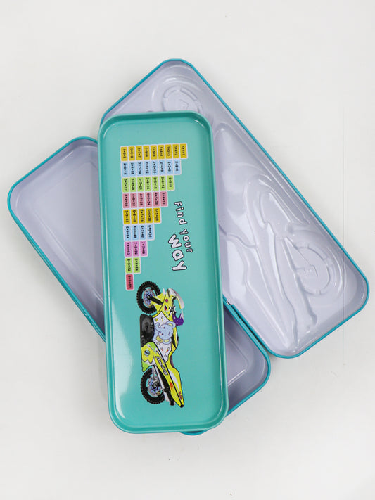 PB08 Metal Pencil Box For Kids Racing Bike Sea Green