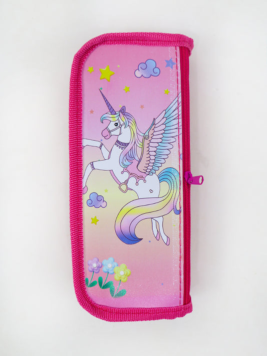 PB07 Zipper Pencil School Pouch For Kids Flying Horse Pink