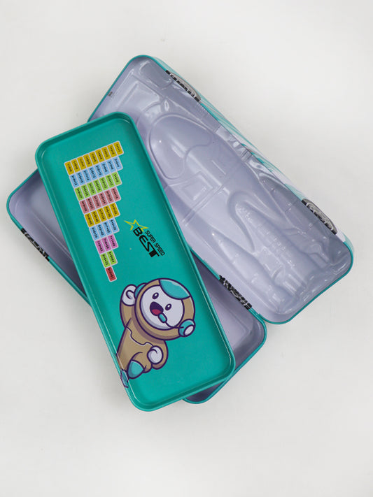 PB09 Metal Pencil Box For Kids Car Sea Green