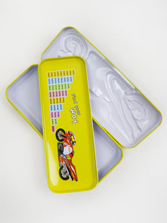 PB08 Metal Pencil Box For Kids Racing Bike Yellow