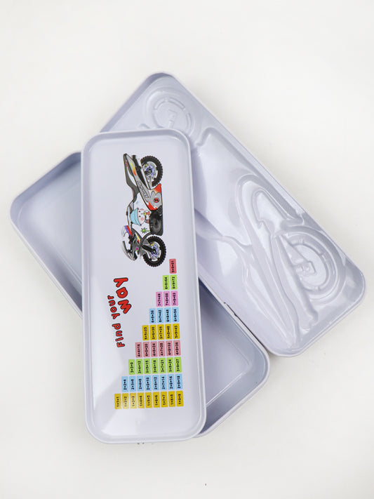 PB08 Metal Pencil Box For Kids Racing Bike Smoke White