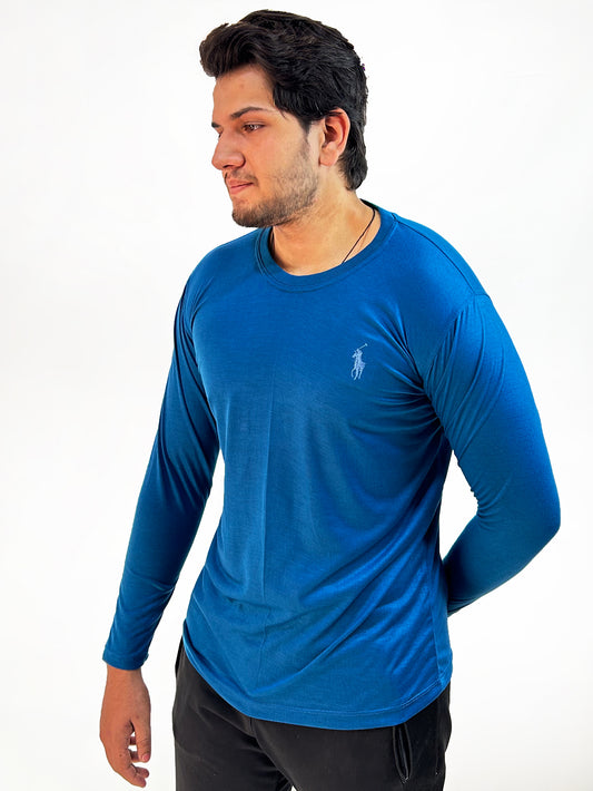 Sea Blue Plain Full Sleeves T-Shirt For Men MG MTS94