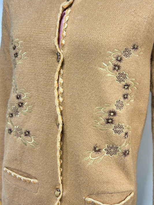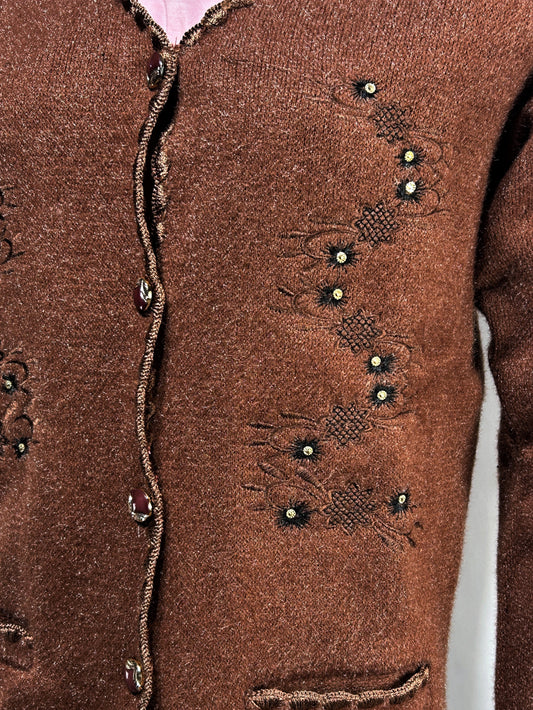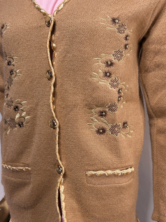 Brown Rabbit Wool Embroidered Full Sleeves Sweater For Women WSW68