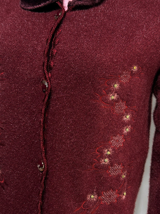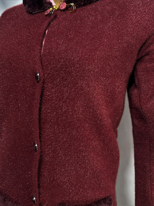 Maroon Rabbit Wool Plain Full Sleeves Sweater For Women WSW78