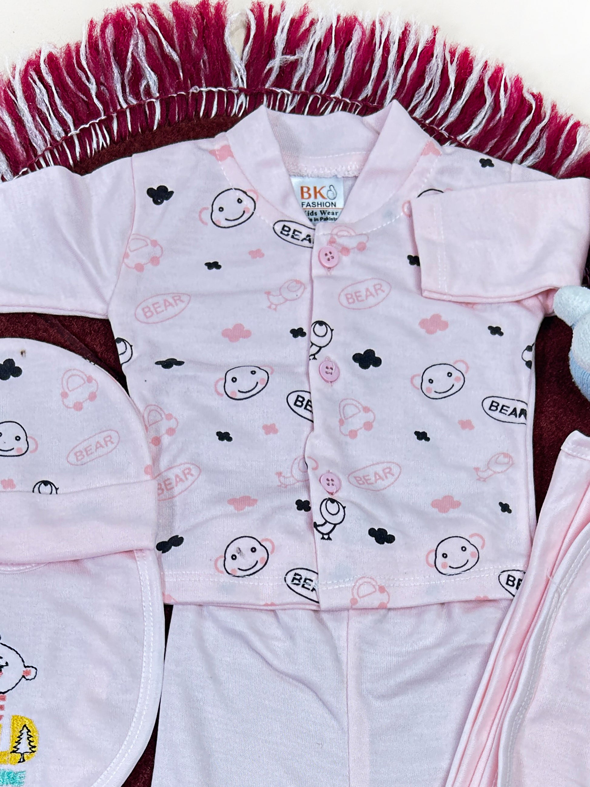 A perfect gift for newborns, this 5-piece set is made with soft interlock fabric to keep your baby cozy and comfortable. Thoughtfully designed for babies aged 0 to 3 months.