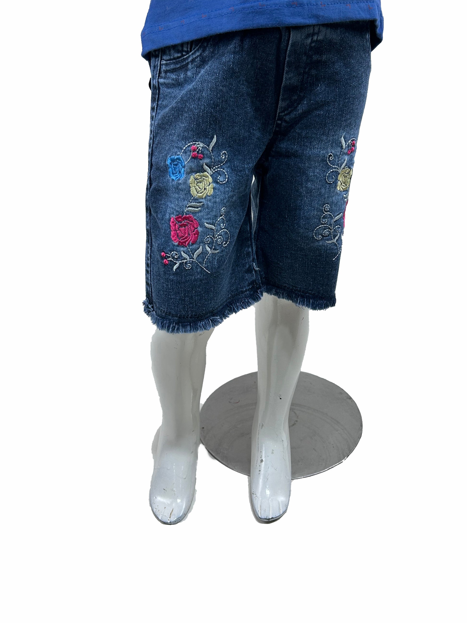 1.5Yrs - 4Yrs Stretchable Flower Blue Denim Jeans For Girls GJ26
