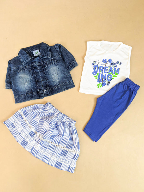 1Yrs - 4Yrs 4Pcs Blue Denim Suit For Girls GS267