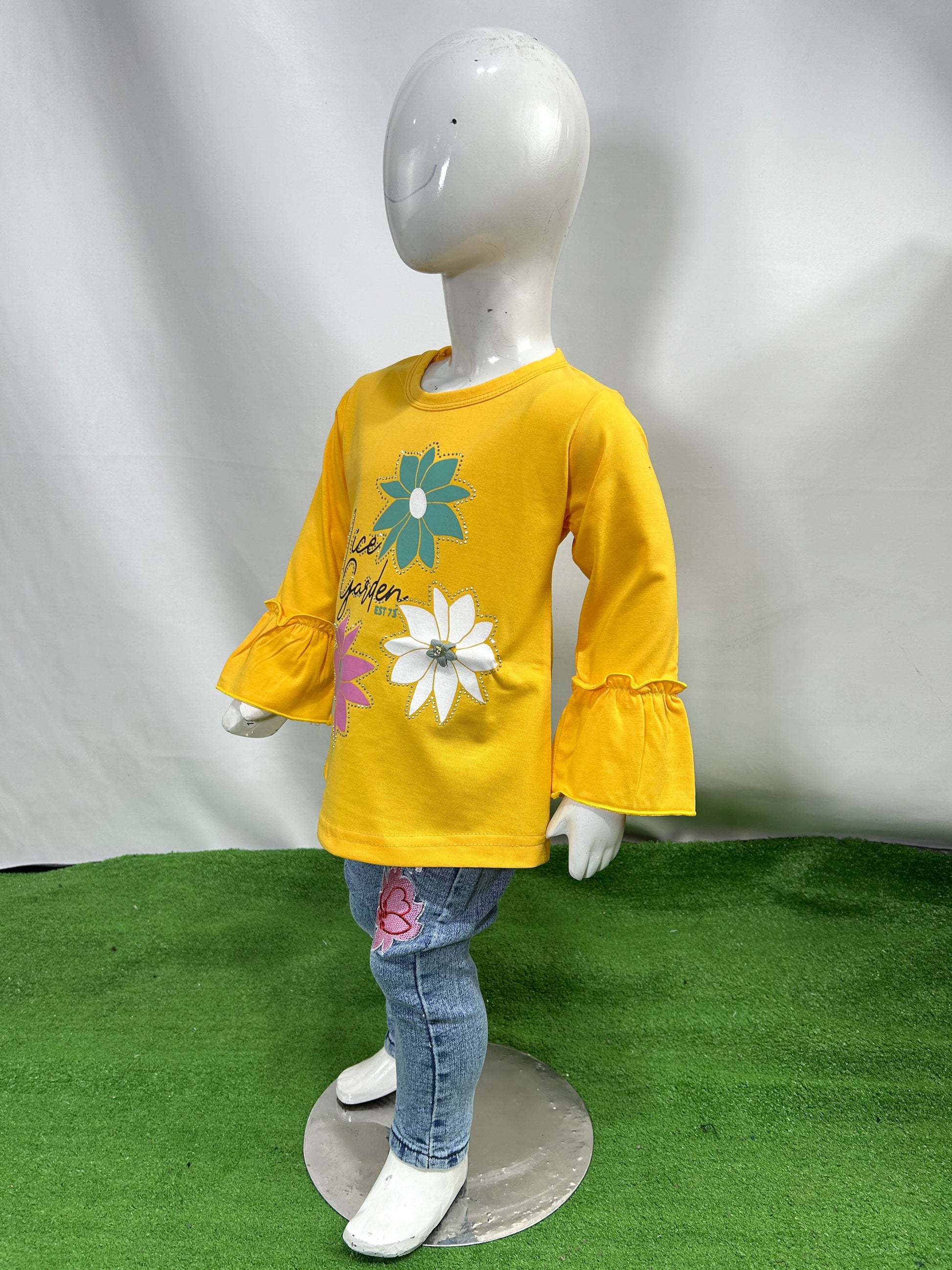 1Yrs - 4Yrs Full Sleeves Girls T-Shirt Aster Flower Yellow