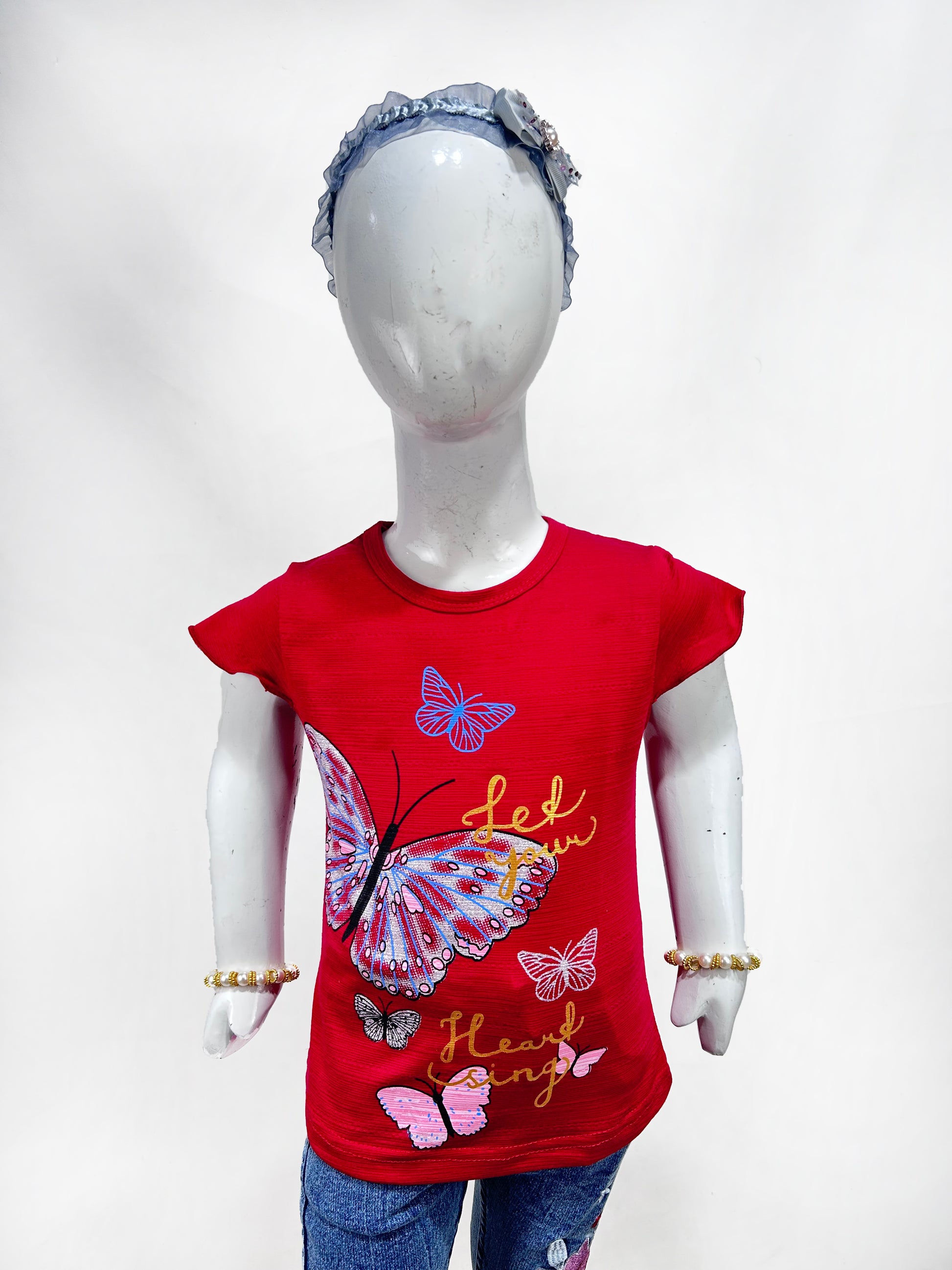 2.5Yrs - 7Yrs SK Betterfly Red T-Shirt For Girls GTS67