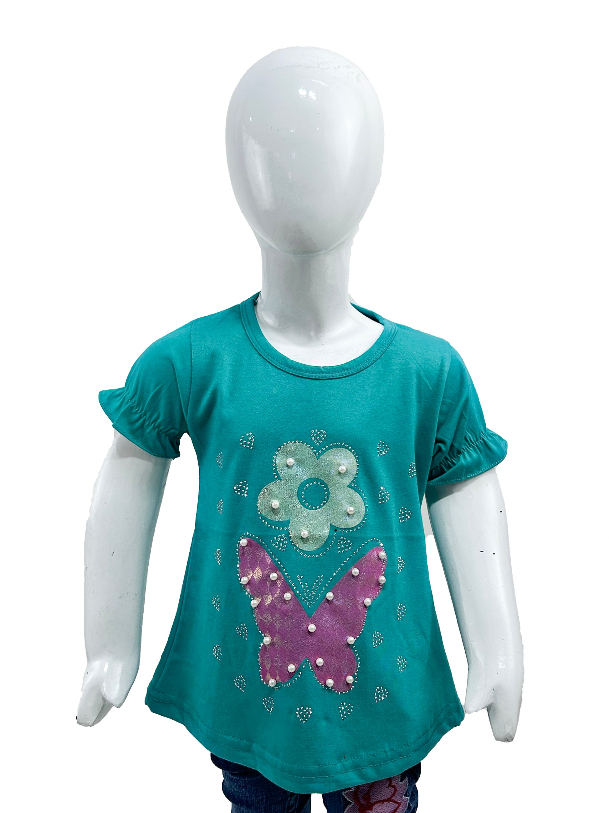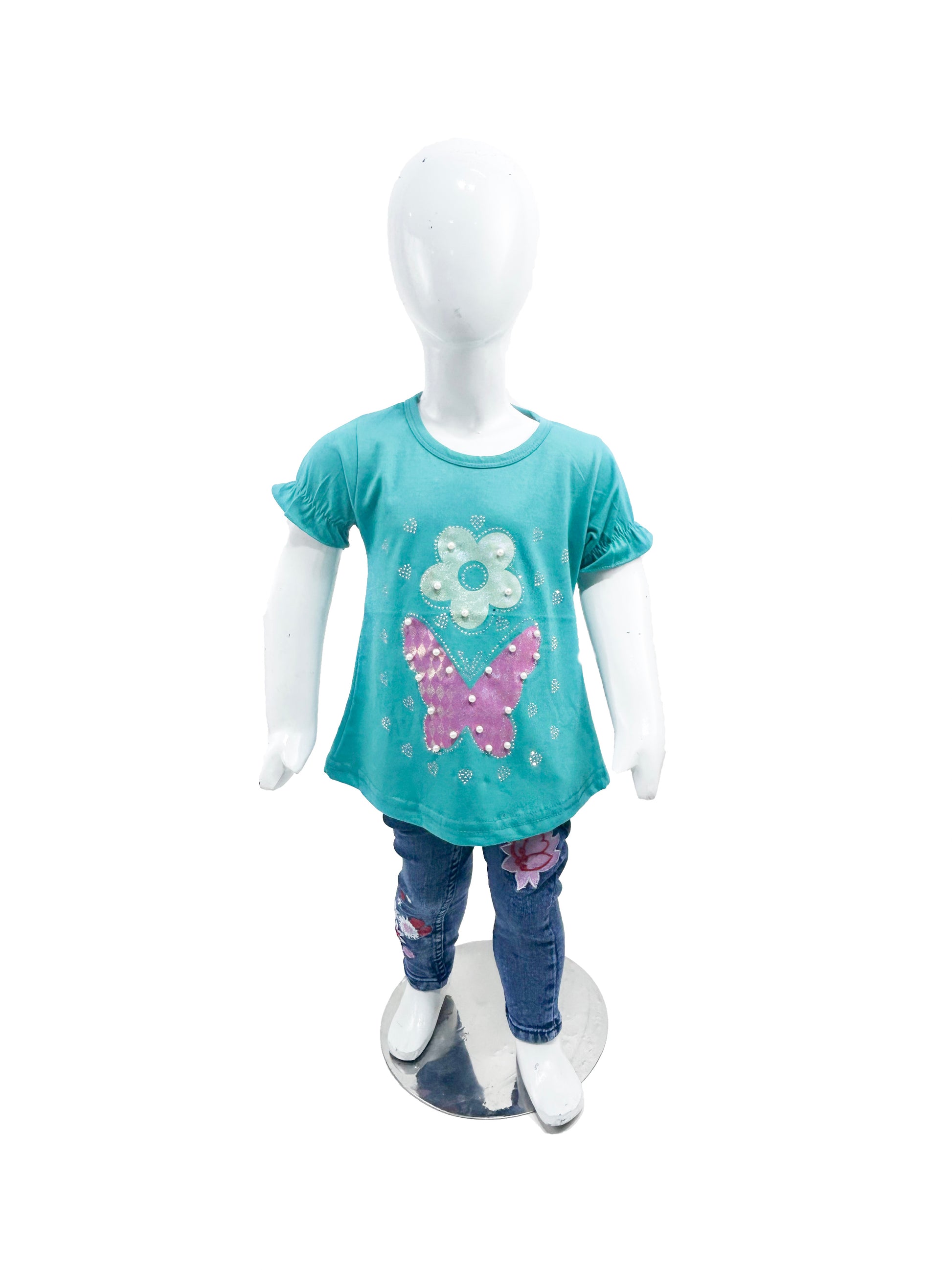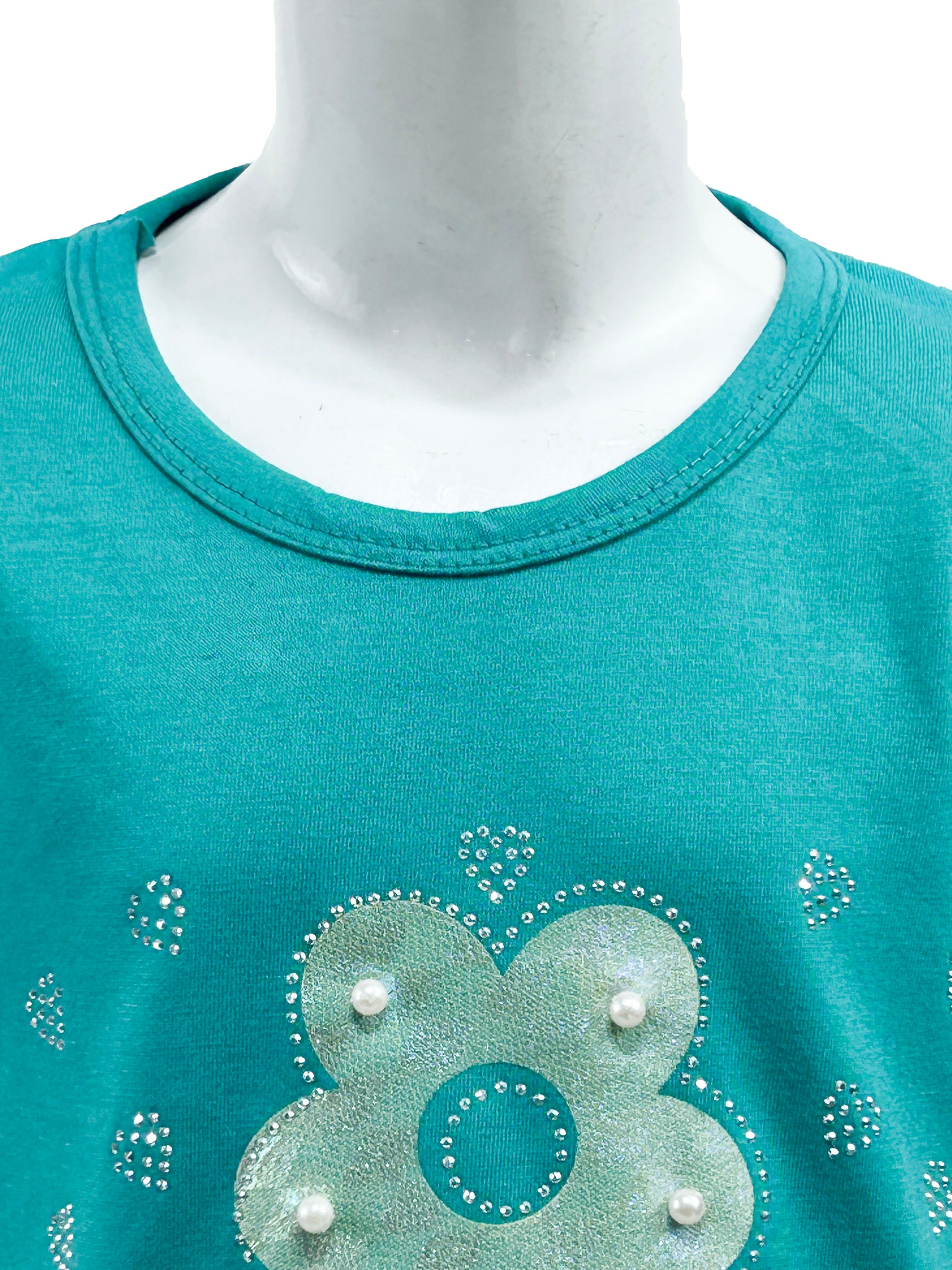 2.5Yrs - 7Yrs TB Flower Ferozi T-Shirt For Girls GTS60