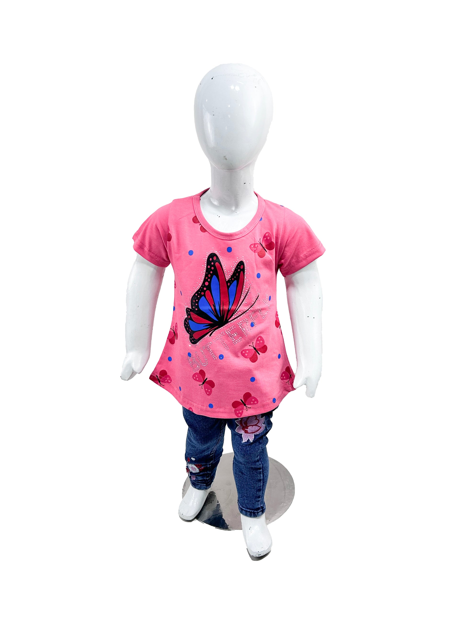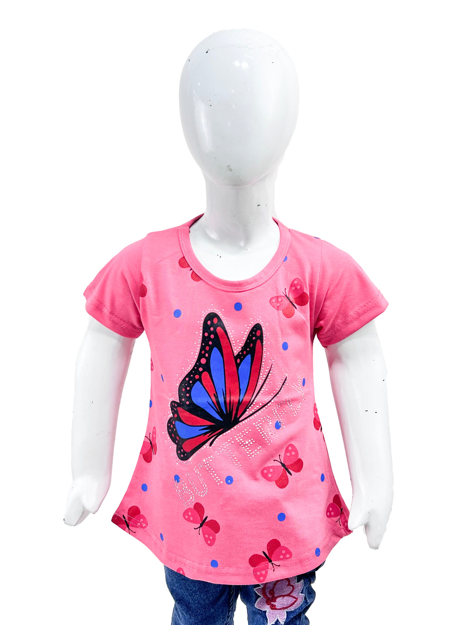 2.5Yrs - 7Yrs TB Pink Butterfly T-Shirt For Girls GTS56