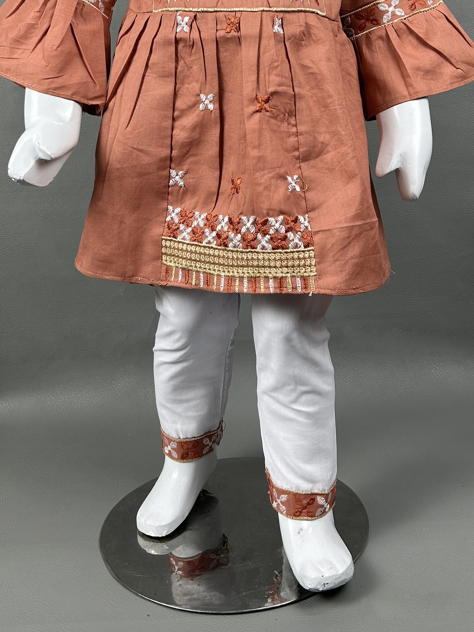 2Yr - 12Yrs Dark Peach Embroidered Suit For Girls RZ GS143