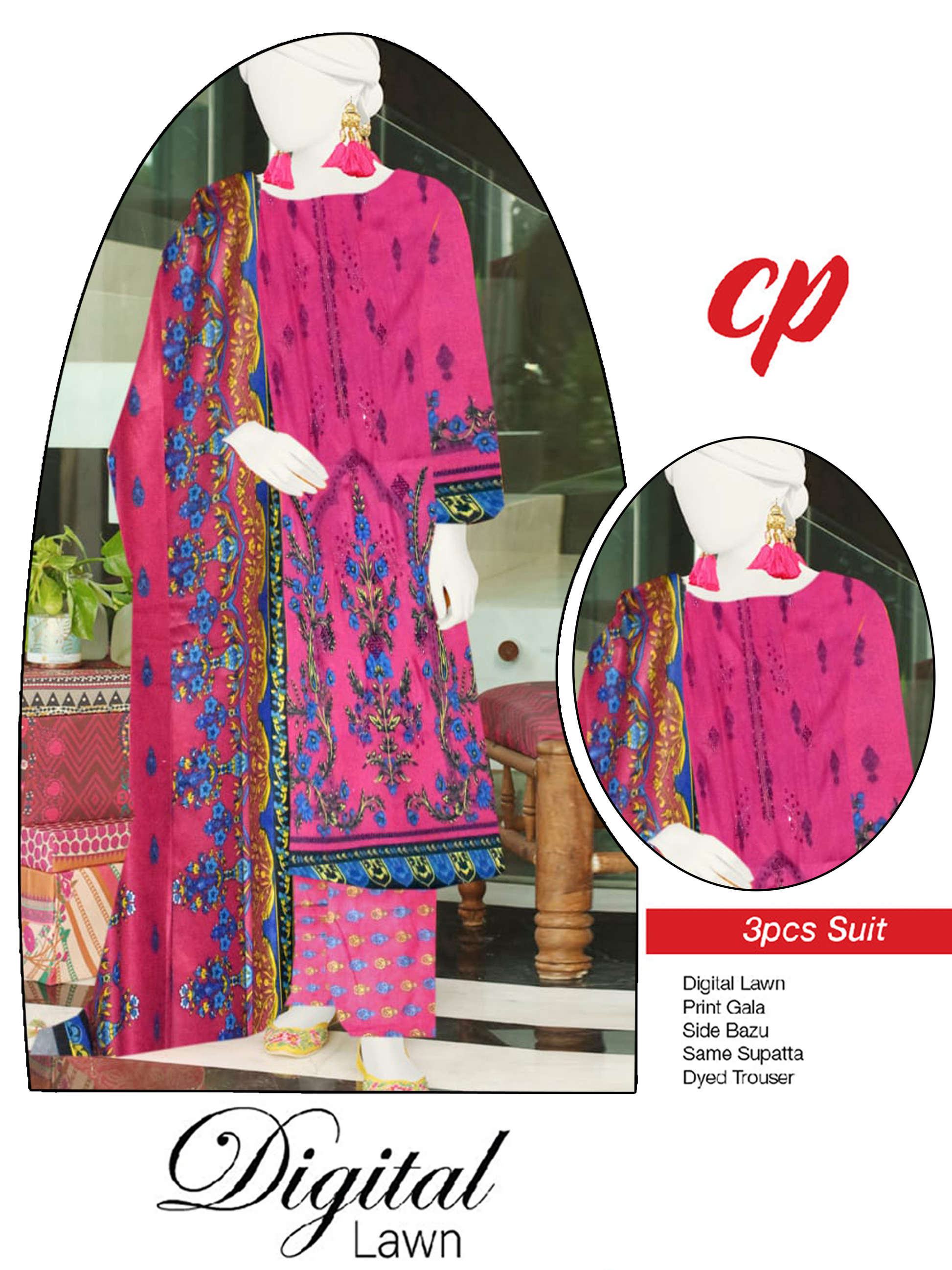 3Pcs Unstitched Digital Lawn Suit For Women WU127
