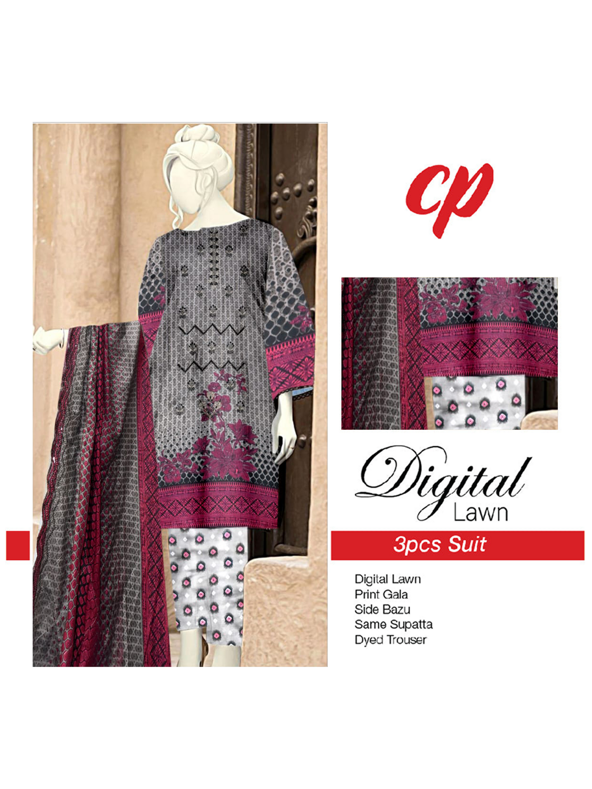 3Pcs Unstitched Digital Lawn Suit For Women WU131