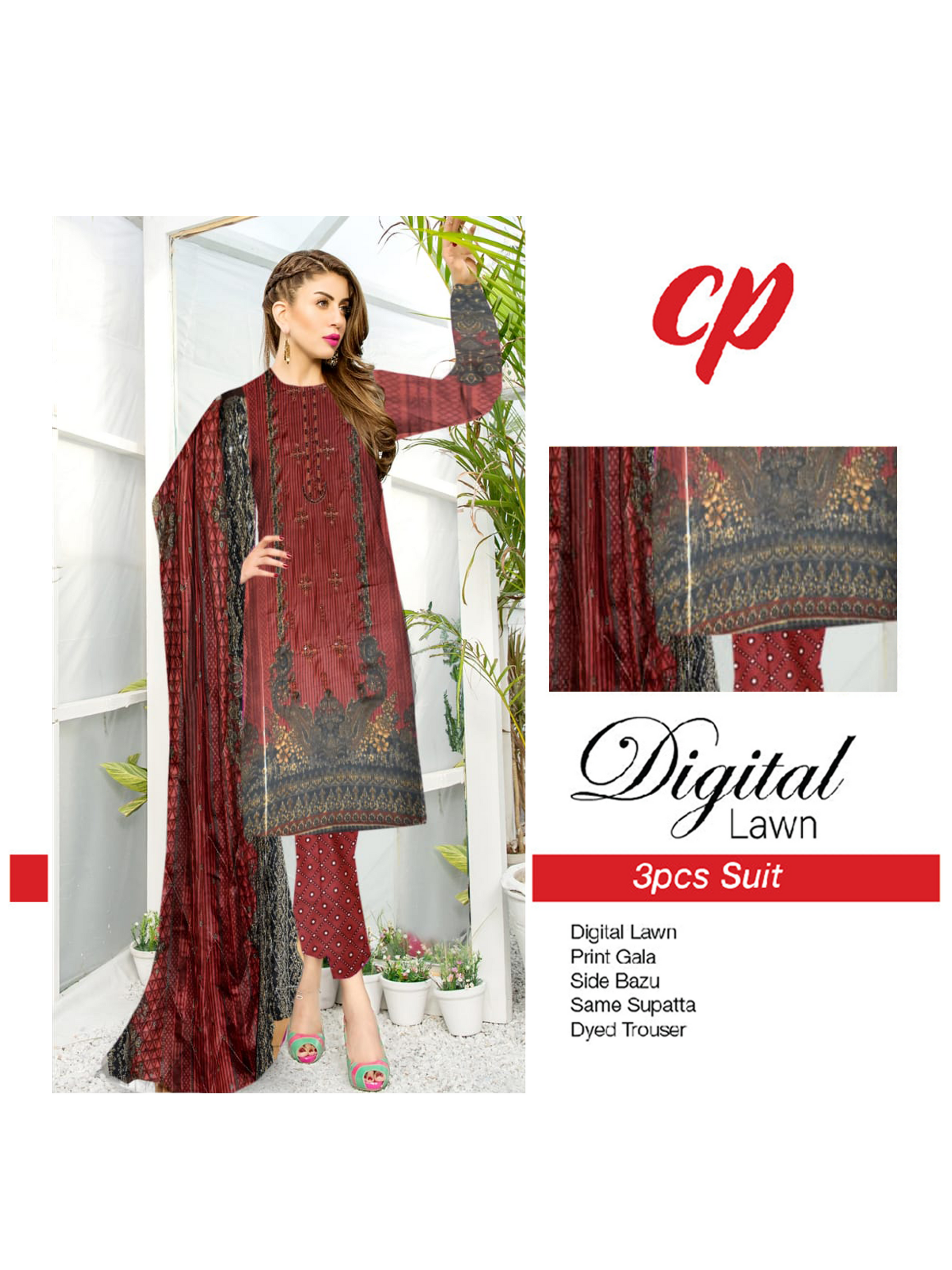 3Pcs Unstitched Digital Lawn Suit For Women WU135