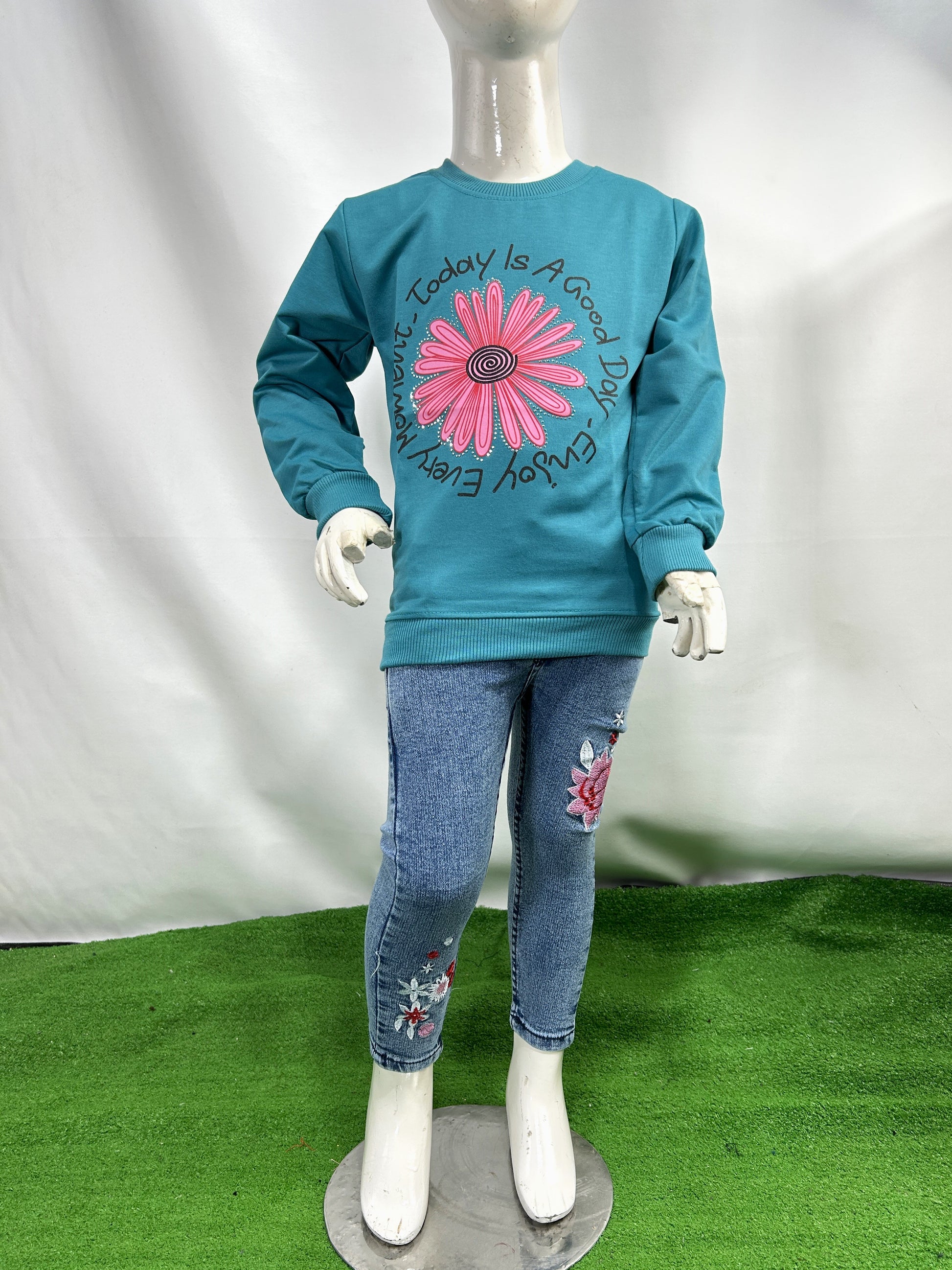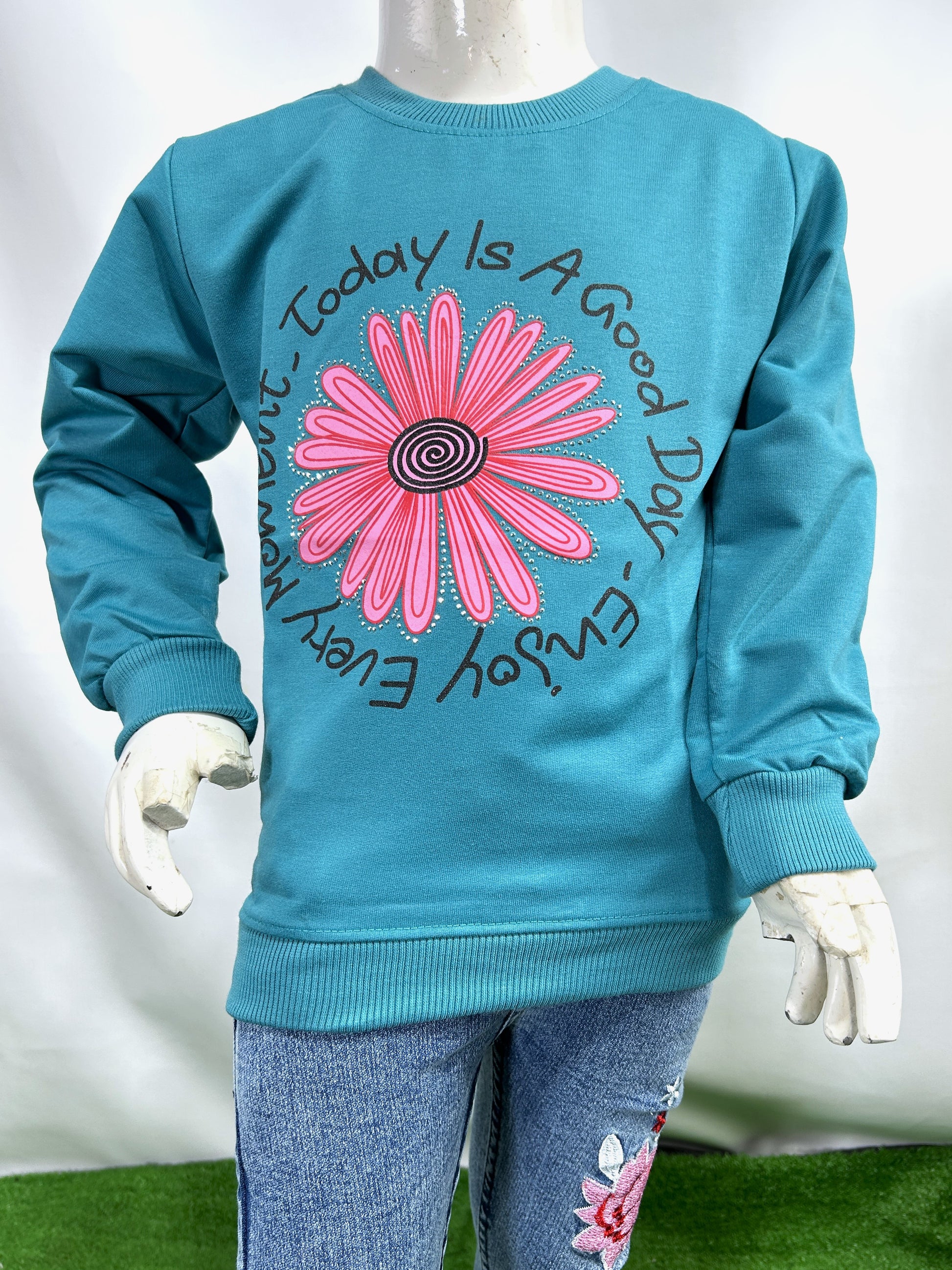 3Yrs - 8Yrs Flower Blue Full Sleeve T-Shirt For Girls SK GTS88