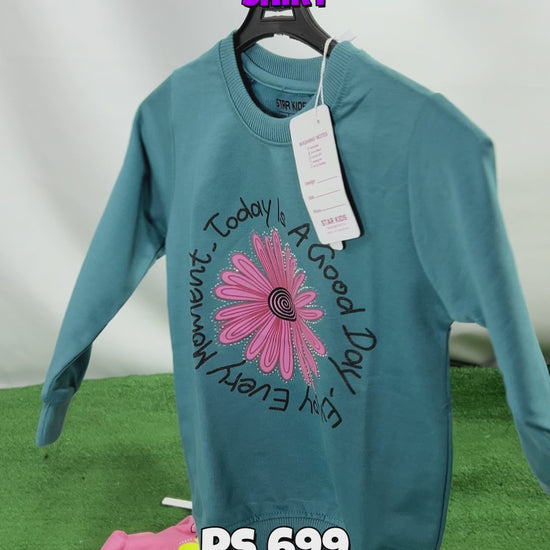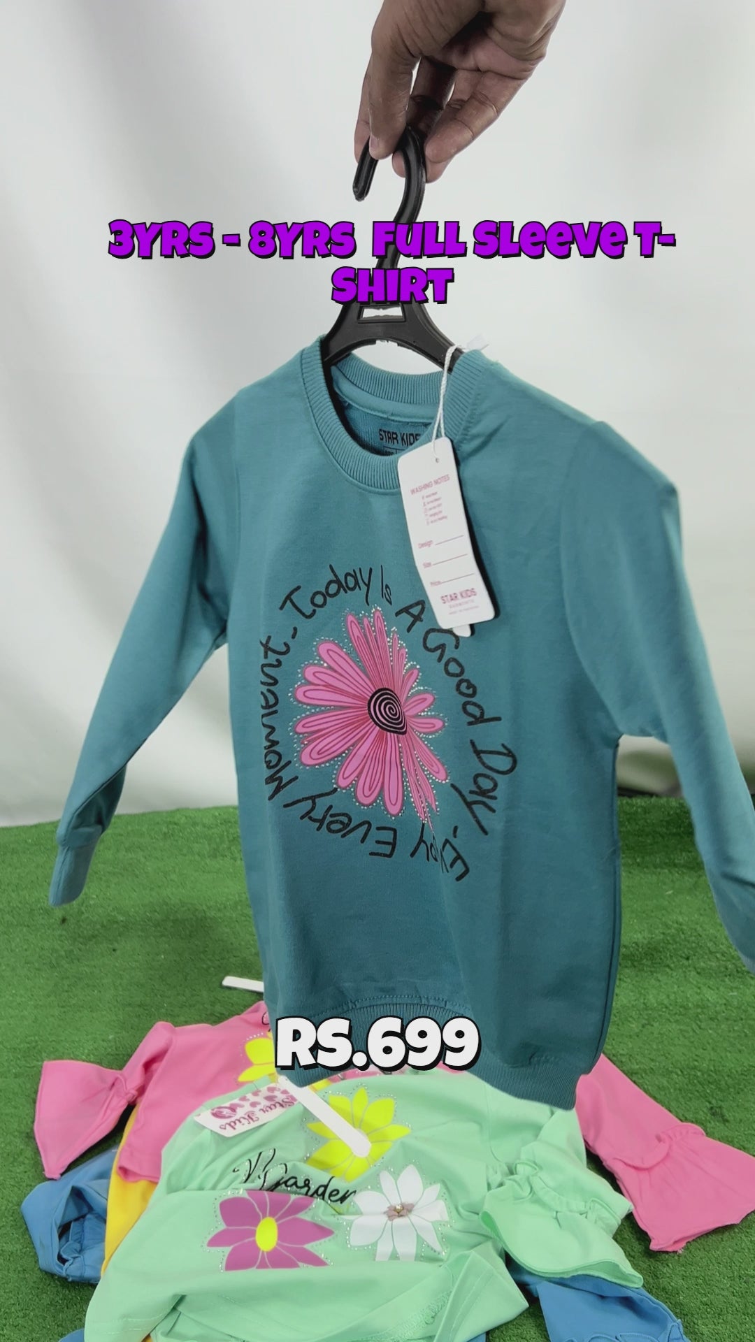 - Adorable flower print full-sleeve t-shirt for girls aged 3–8 years