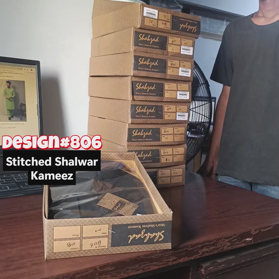 806 Men's Cotton Kameez Shalwar Stitched Suit Black 08 MSK234