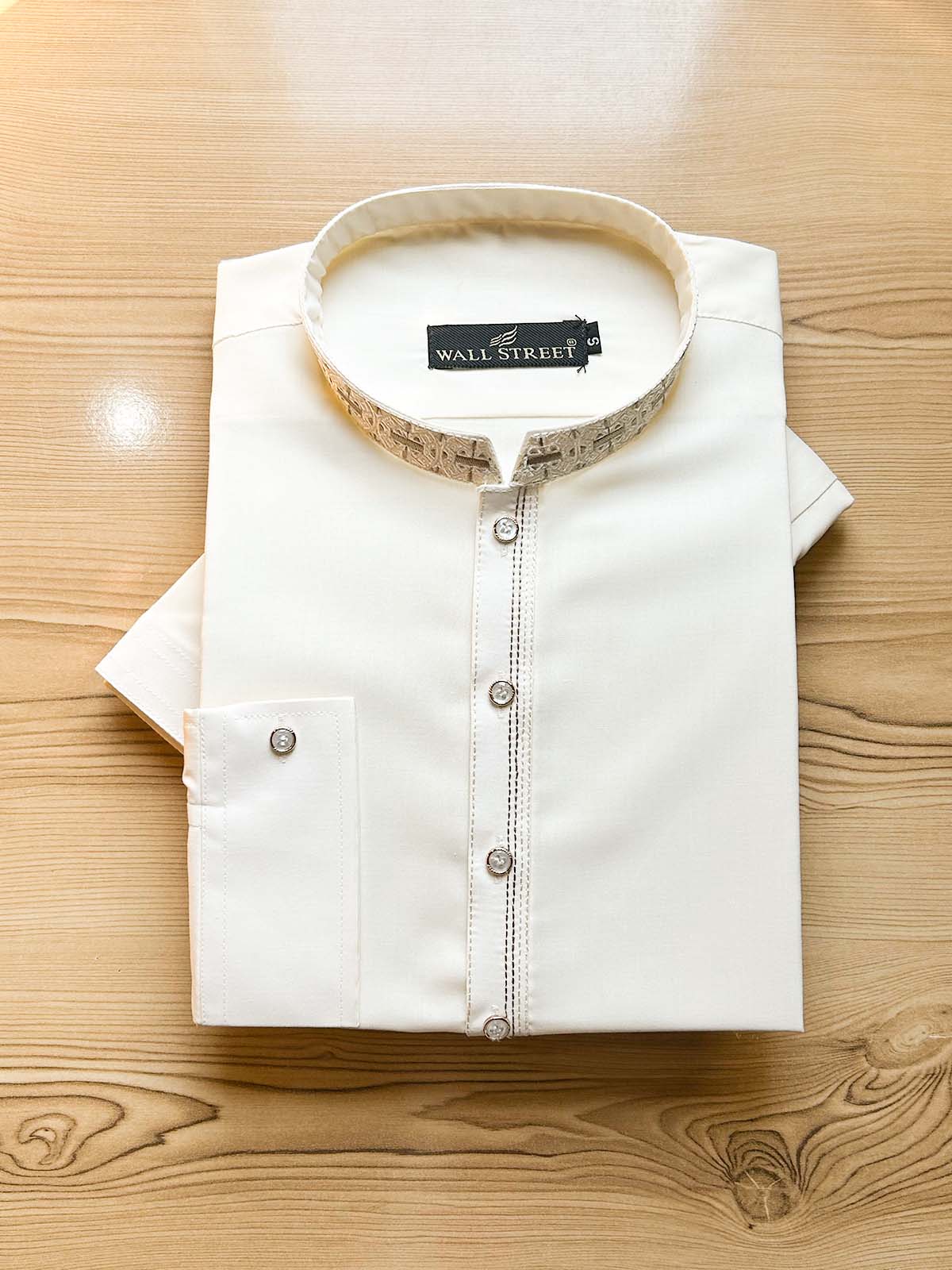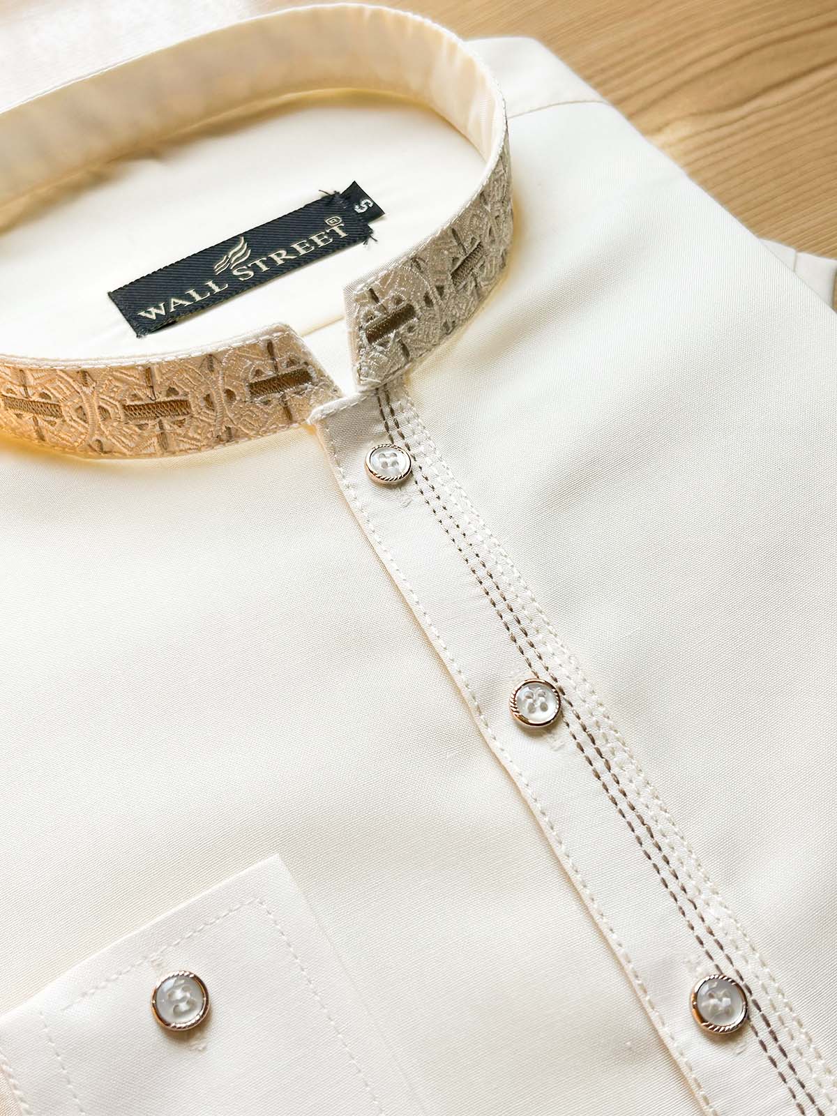 926-1 Cream Stitched Suit Sherwani Collar Kameez Shalwar For Men MSK447