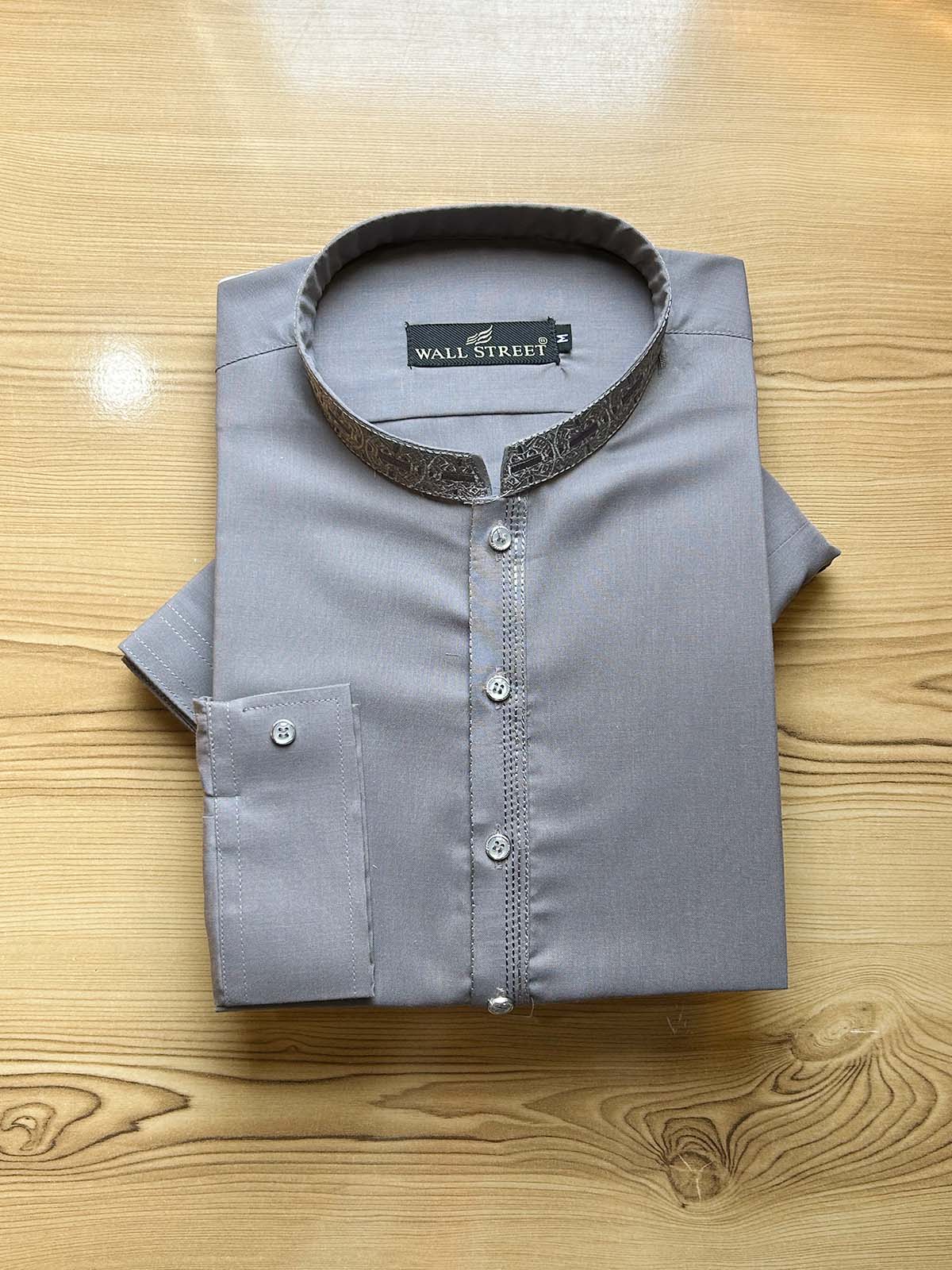 926-5 Grey Stitched Suit Sherwani Collar Kameez Shalwar For Men MSK451