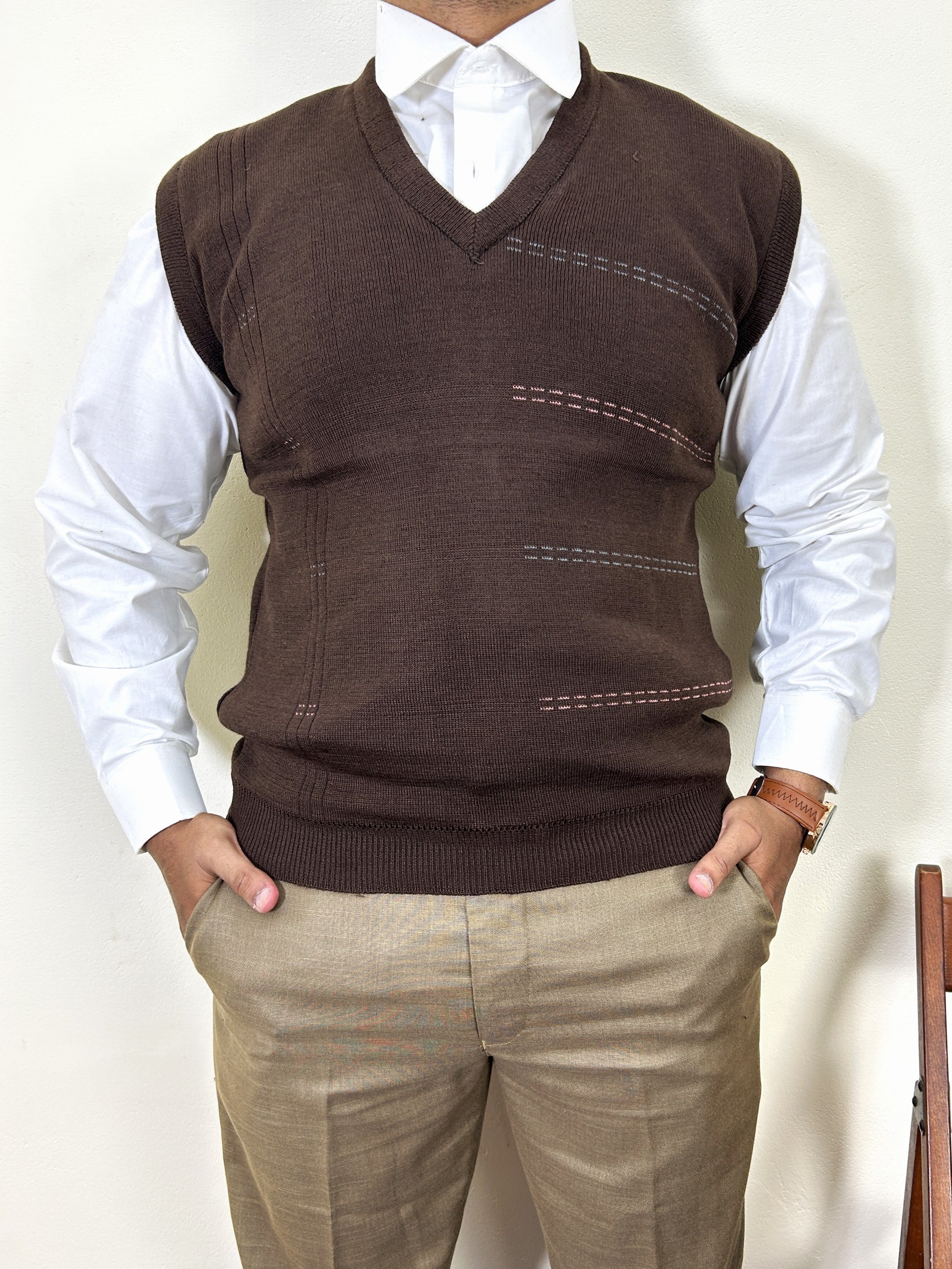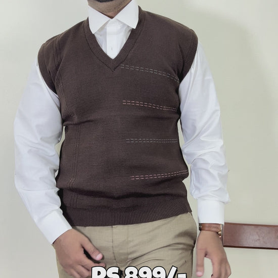 Upgrade your winter wardrobe with this timeless Sleeveless Sweater for Men, perfect for layering over shirts or under jackets for a polished look.