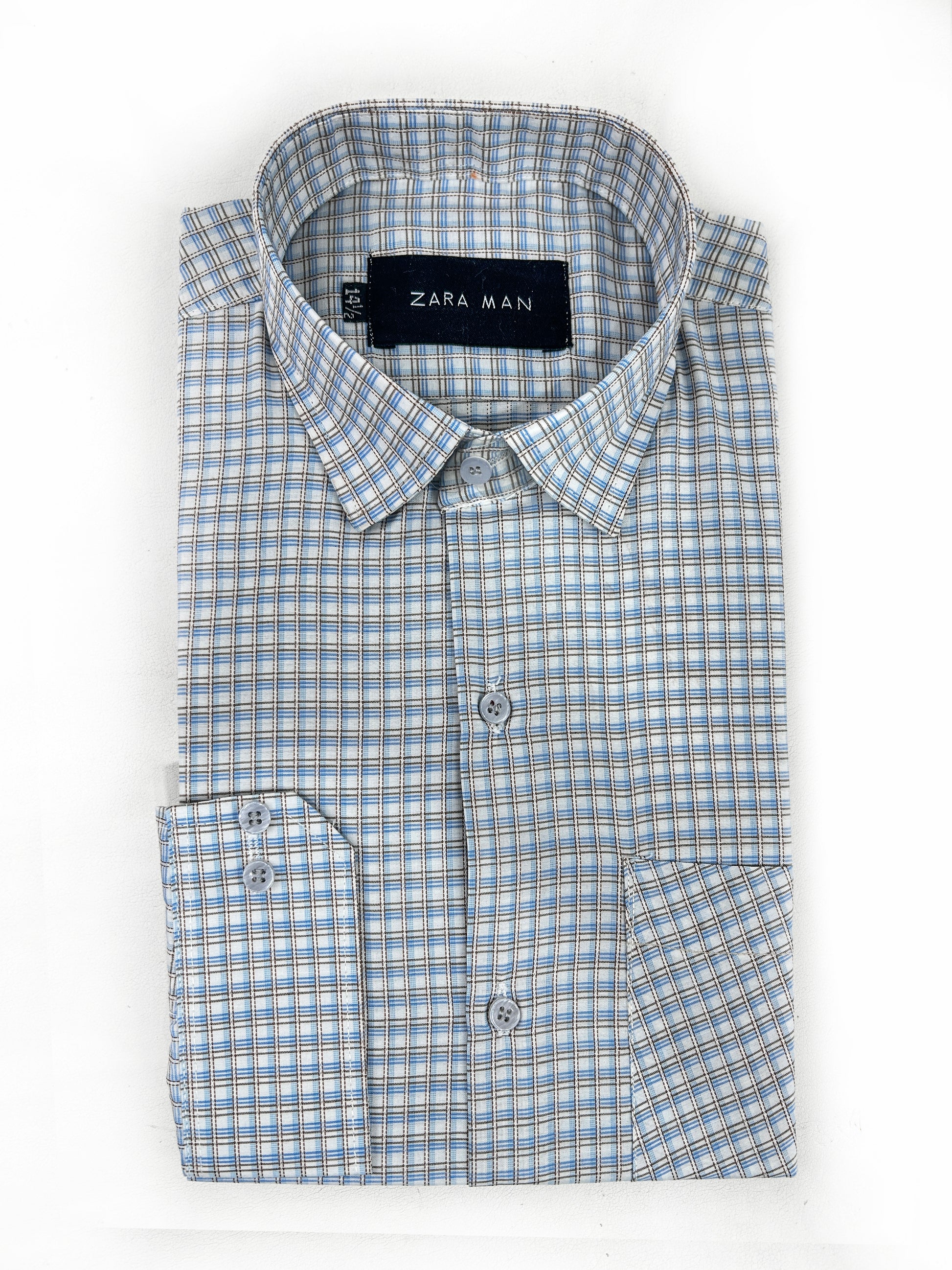 Blue Pattern Formal Dress Shirt For Men MFS350
