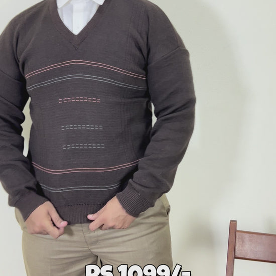 Dark Brown Full Sleeves Sweater for Men MSW63