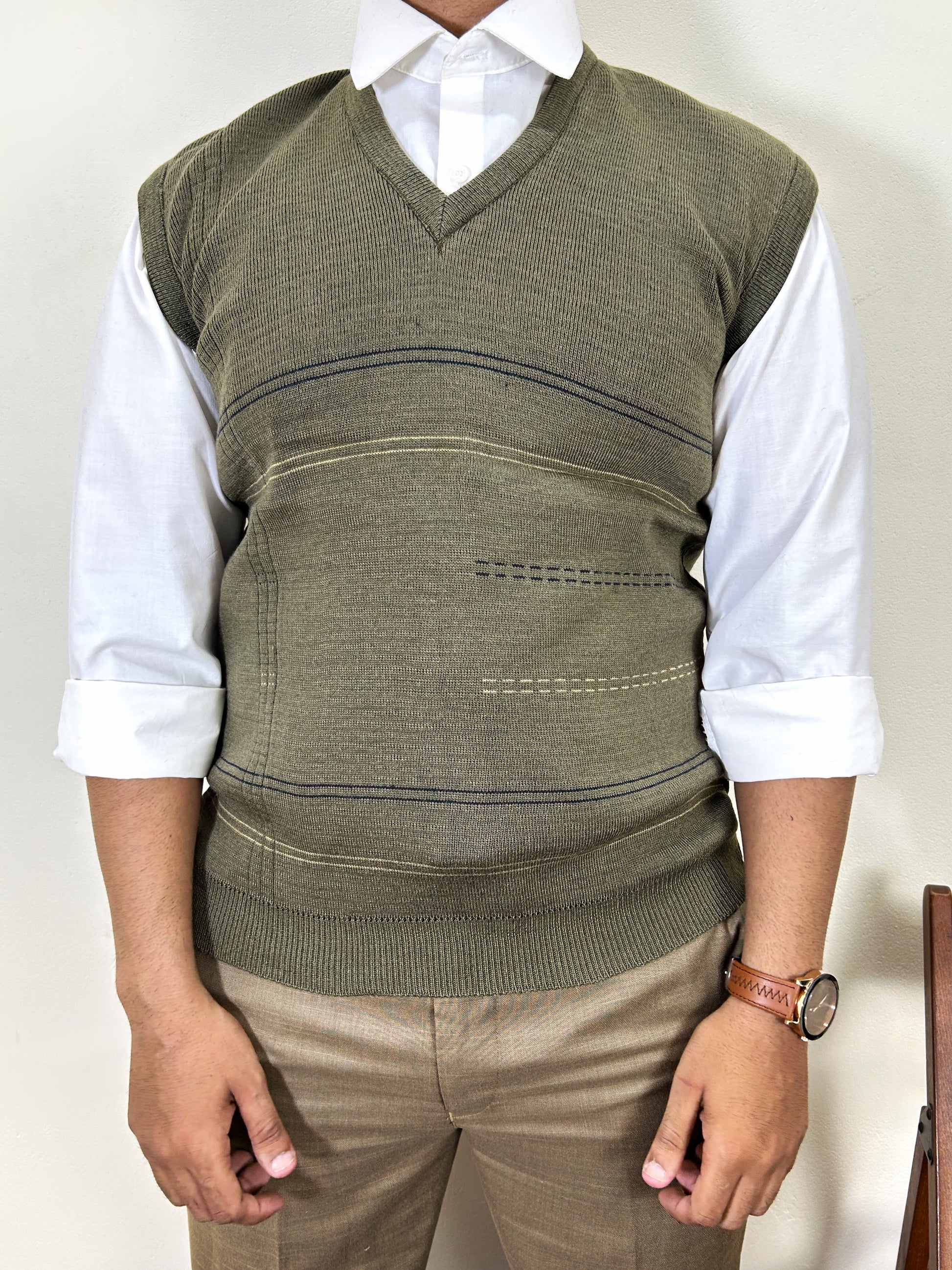 Upgrade your winter wardrobe with this timeless Sleeveless Sweater for Men, perfect for layering over shirts or under jackets for a polished look.