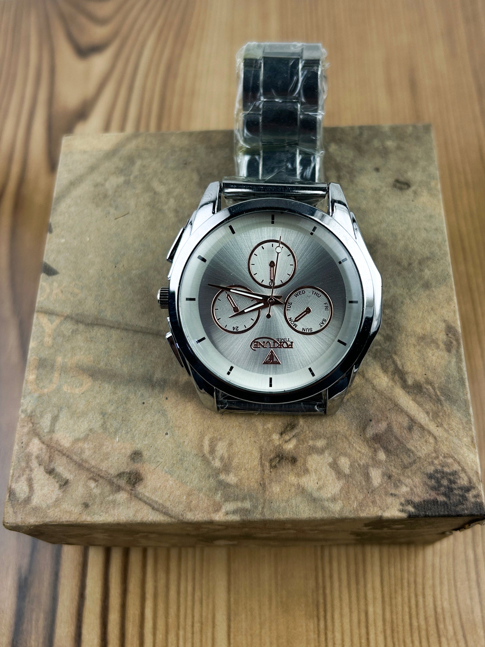 - Chronograph Function: Features chronograph sub dials for measuring elapsed time.
