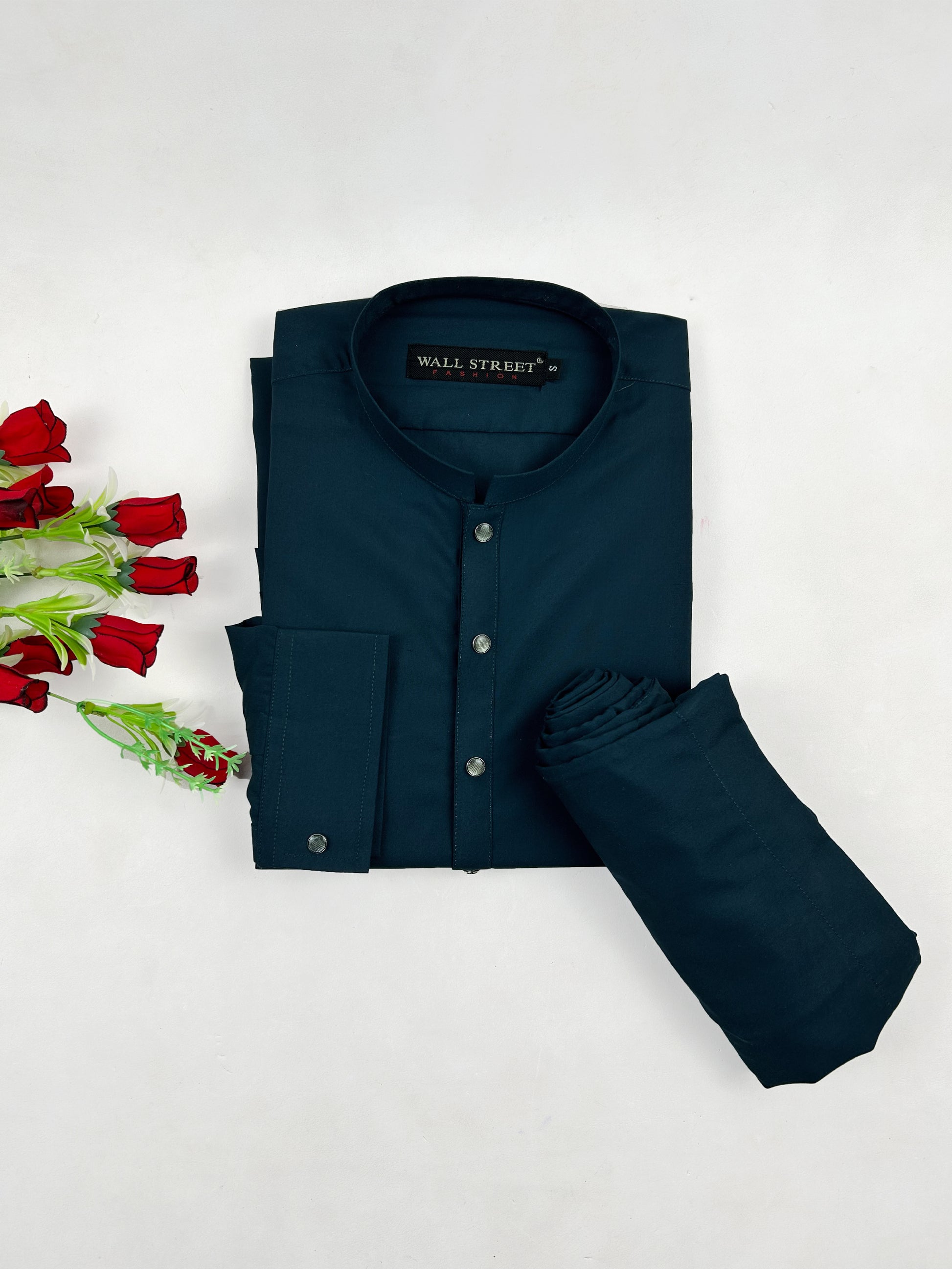 Elevate your traditional wardrobe with this premium stitched kameez shalwar for men. Featuring a sherwani collar, buttoned cuffs, and crafted from 100% Cotton fabric for style and comfort.